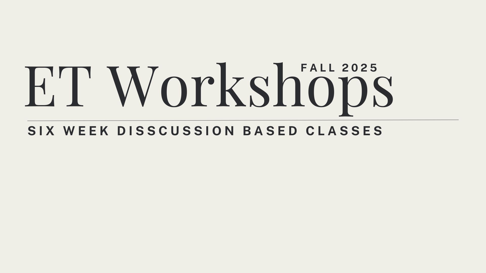 Workshops - Starting on October 1st