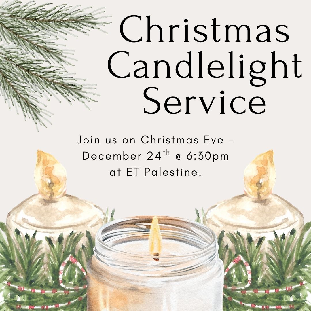 On Christmas Eve (December 24th, 2025) @ 6:30pm here at ET Palestine we are having a Candlelight Christmas Eve service. Join us to honor and celebrate the birth of our Savior together as the church.